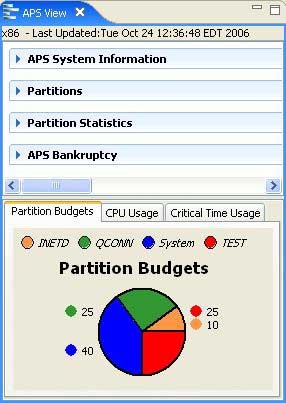 This view displays information about the adaptive partitioning scheduling (APS) on the target system.